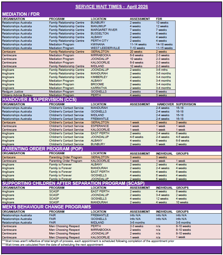 Current waiting periods for WA family law services
