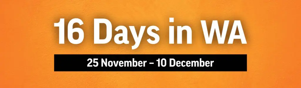The annual 16 Days in WA – Stop Violence Against Women campaign takes place from 25 November to 10 December.